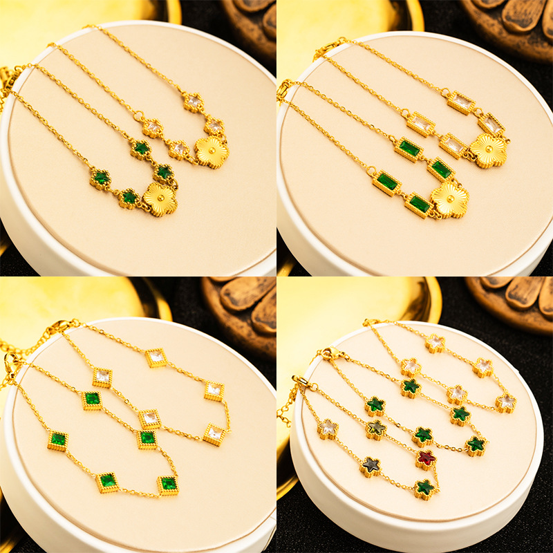 Stainless Steel Factory Customizes Various Styles of Inlaid Natural Stone Shell Oil Dripping Craft Women's Necklaces and Pendants Wholesale