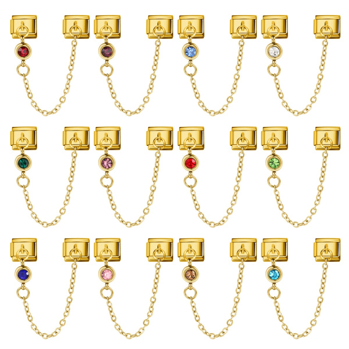 Cross-Border Hot Selling 12 Birthstone Italian Module Bracelet Gold Hook Pendant DIY Elastic Stainless Steel Bracelet