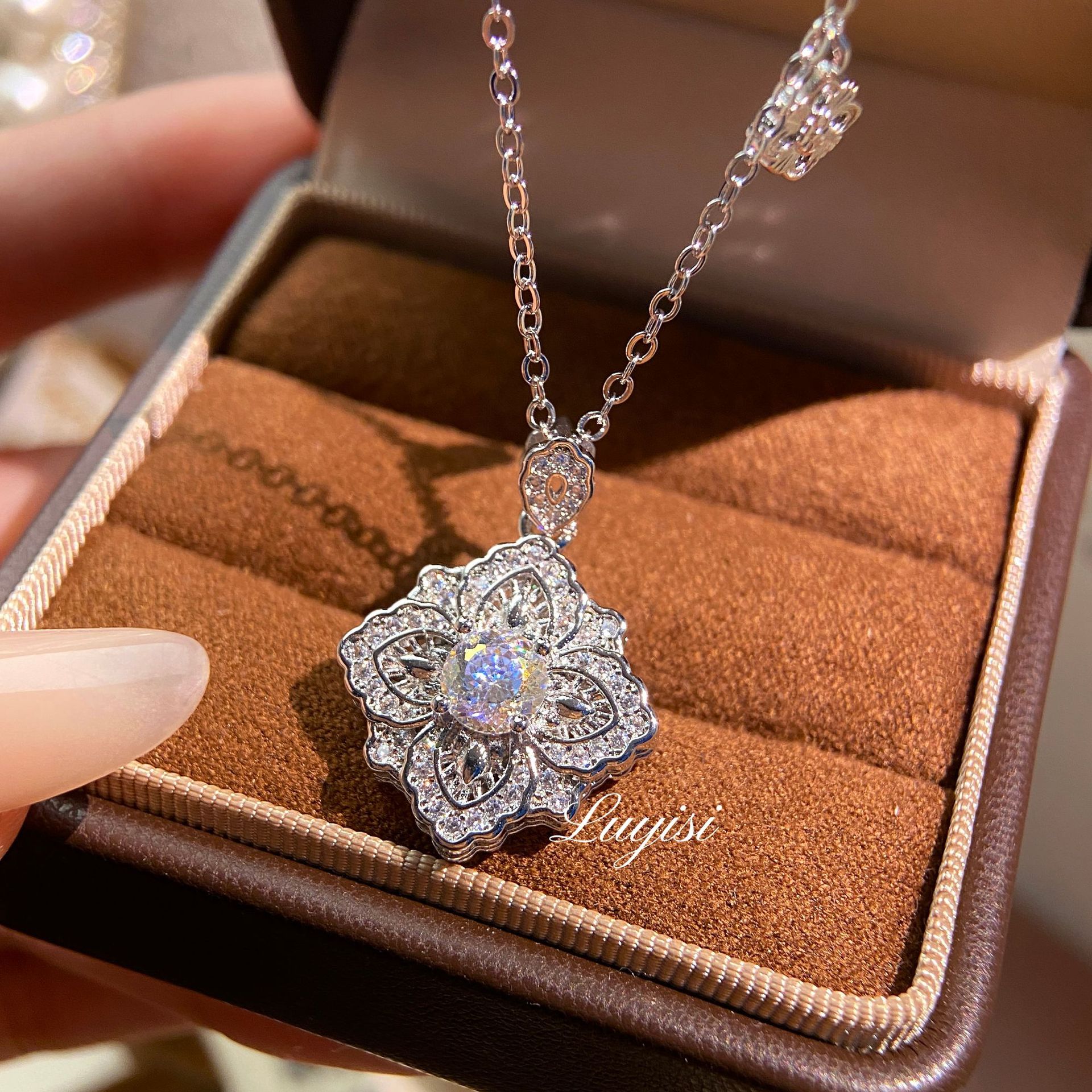 2024 New Zhuangshang Jewelry Bird's Nest Cut Retro Big Heart Pendant Necklace Main Stone 20*20