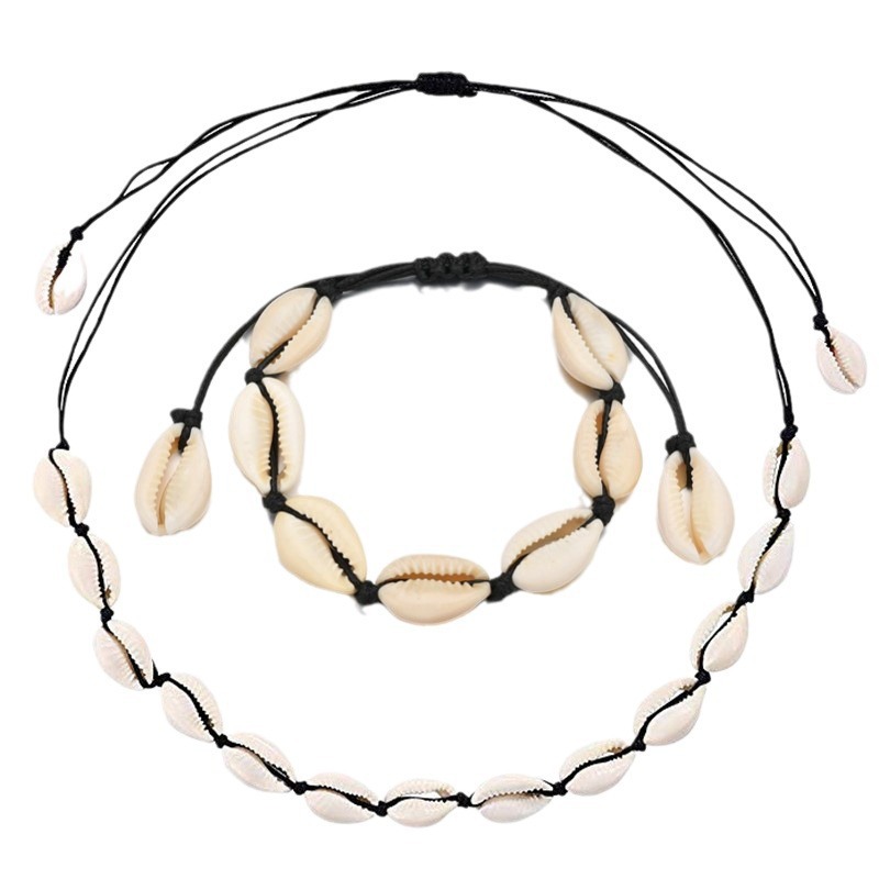 European and American Amazon Black Flat Knot Shell Necklace Natural Shell Hand Knotted Necklace Manufacturer Wholesale