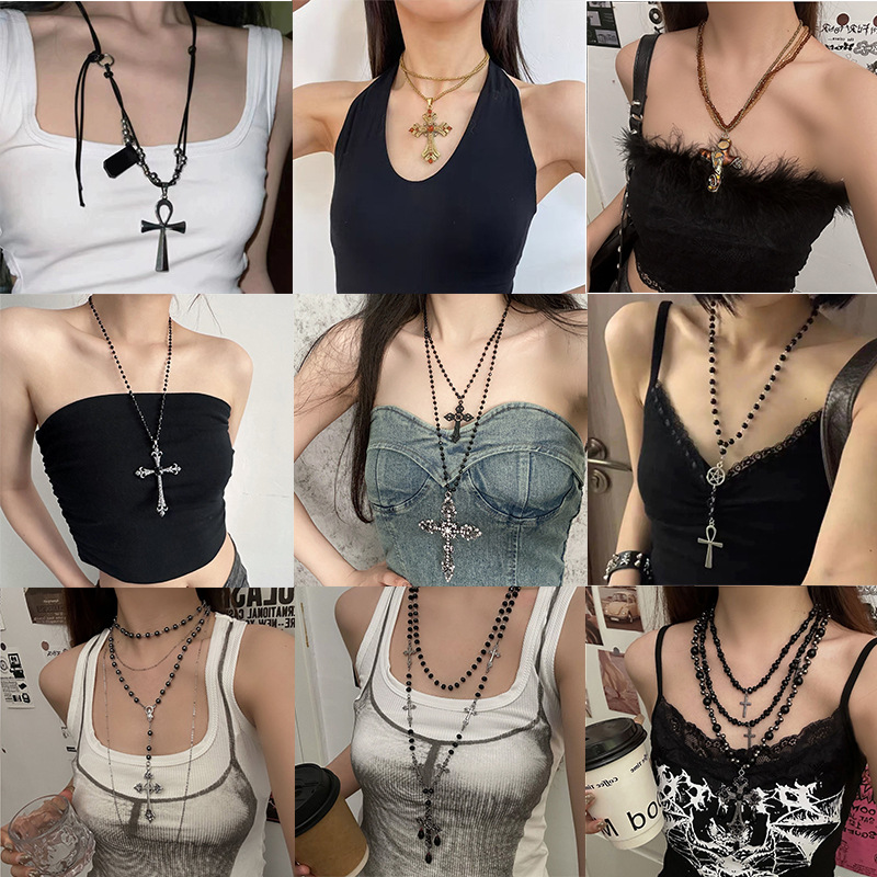 European and American Cross-border Cross Heavy Industry Pearl Necklace Dark Gothic Style Multi-layer Stacked Necklace Niche Design Necklace