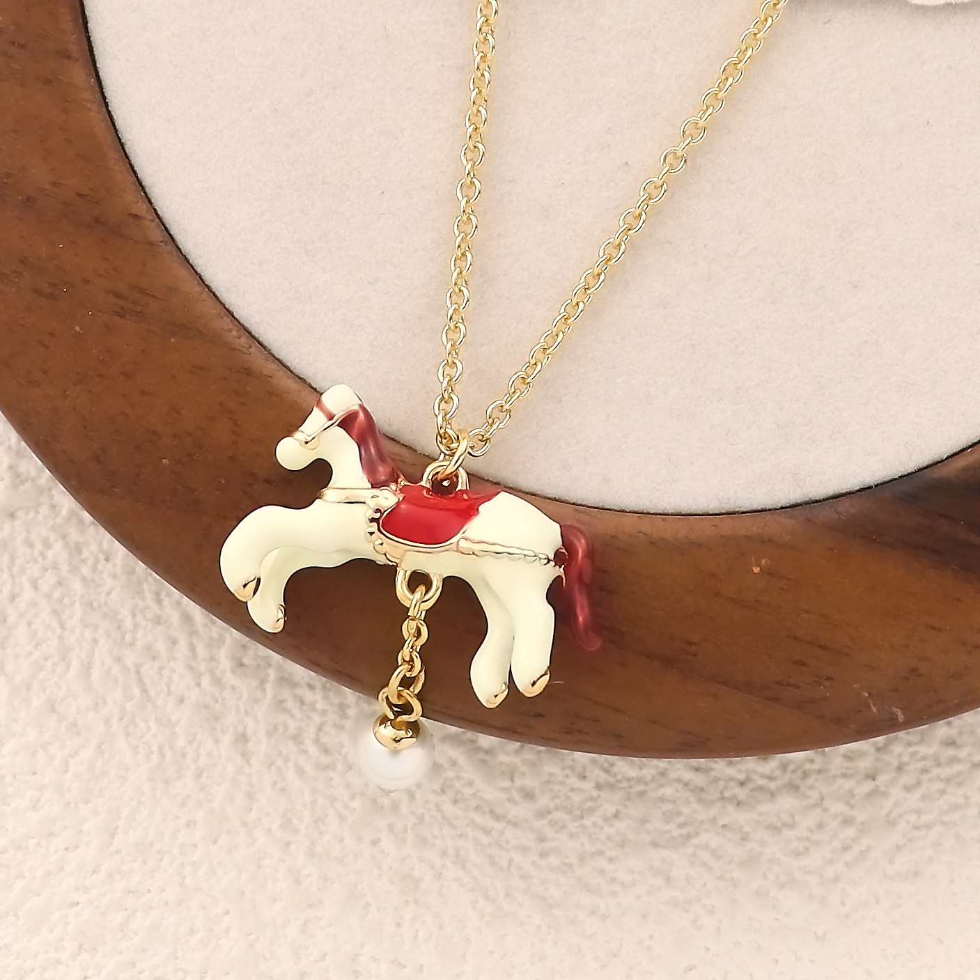 Cartoon Creative Childlike Creative Inlaid Enamel Glaze Zircon Carousel Pearl Pendant Metal Necklace
