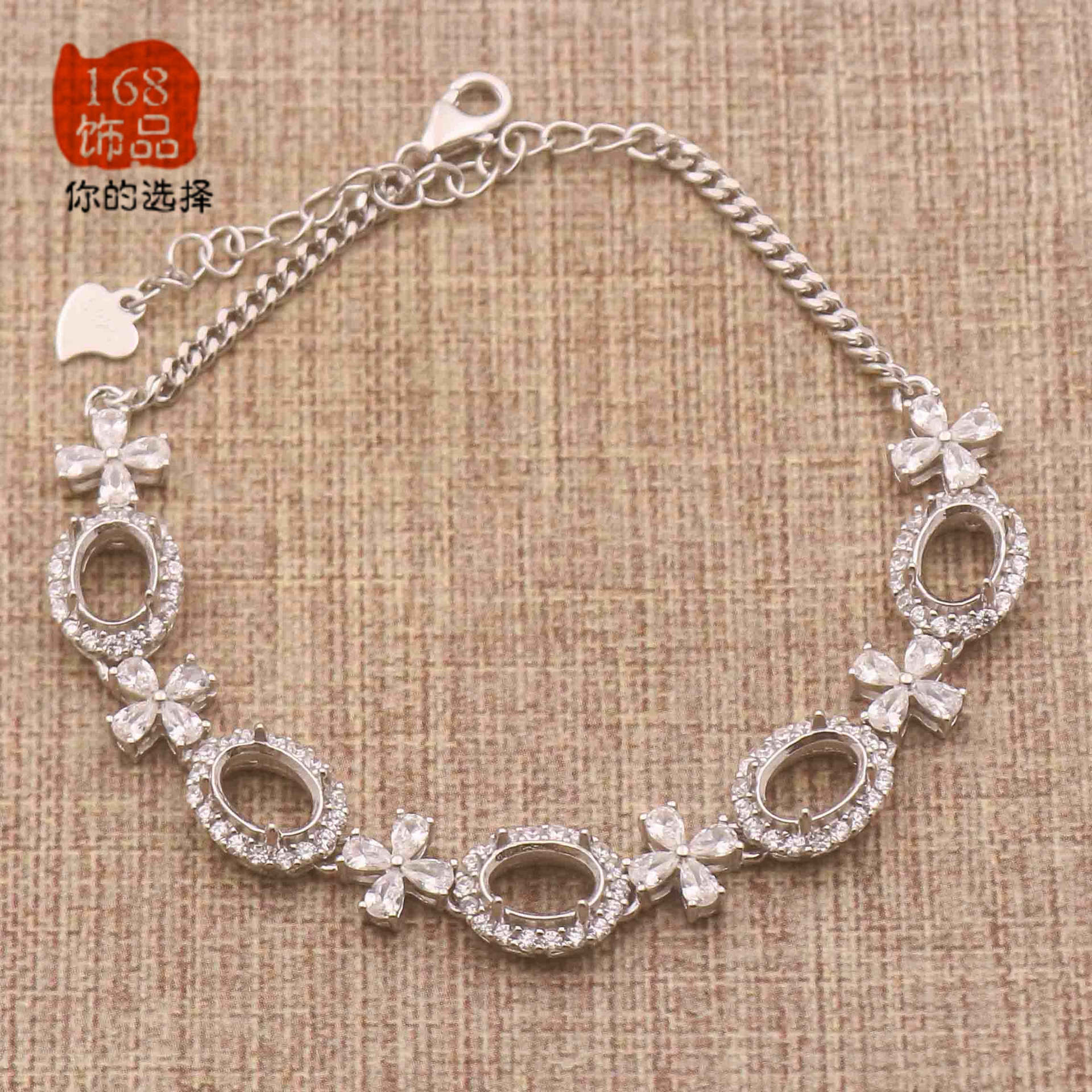 S925 Silver Women's Fugitive Princess Bracelet Empty Holder Multiple Specifications Jade Jade Colored Treasure Ring Surface Inlay DIY