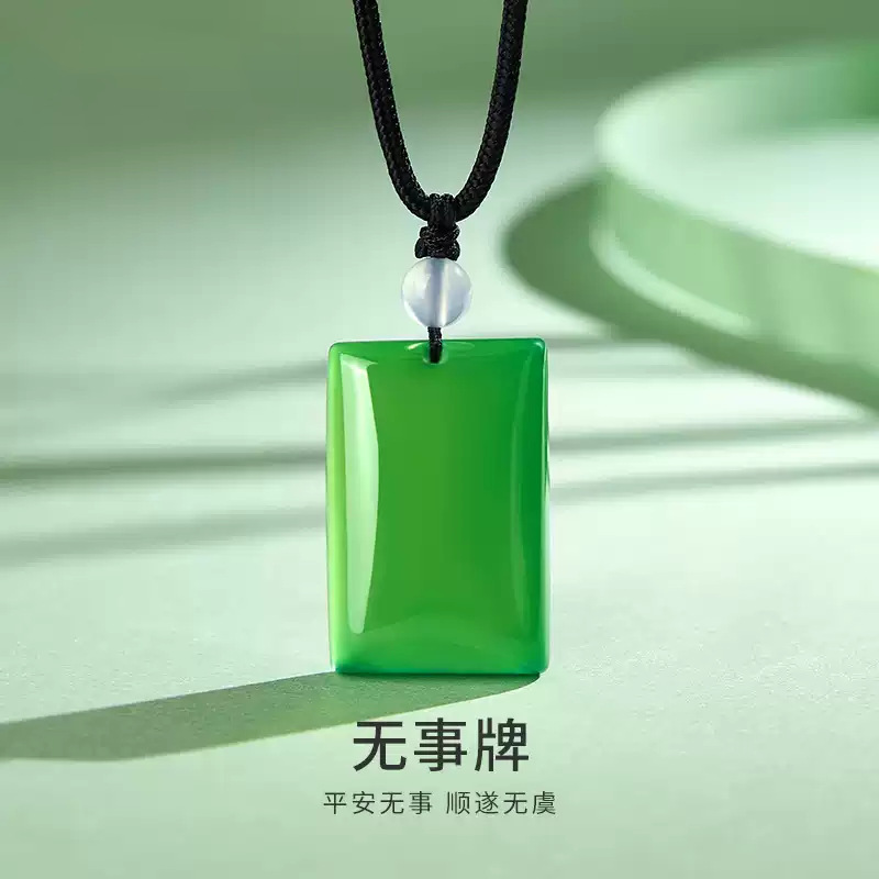 Natural Green Peace and Safety Brand Necklace Gold Bead Chain Men's Ice Jade Square Brand Pendant Mother's Day Birthday Gift