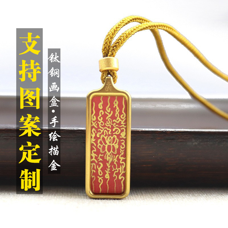 Thangka Pendant Xizang Hand-painted Gold Pendant with Five Scriptures Guanyin Rune Small Thangka Gawu Box Pendant Necklace