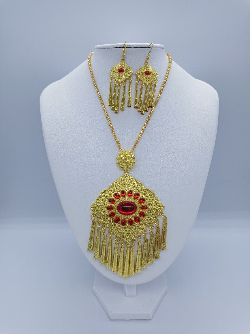 Xishuangbanna Dai Golden Diamond Necklace Earrings Set Alloy Men and Women Southeast Asia Thailand Fashion Jewelry