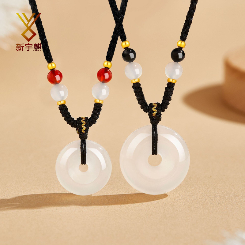 New Chinese-Style Chalcedony Safety Buckle Braided Rope Couple Necklace, National Trend Design, Fortune Bead Clavicle Chain, Unisex
