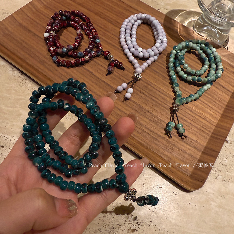 Vintage Artistic Ethnic Style Ceramic Bracelet Multi-circle Beaded Bracelet New Chinese Style National Style Men's and Women's Overlapping Buddha Beads Accessories