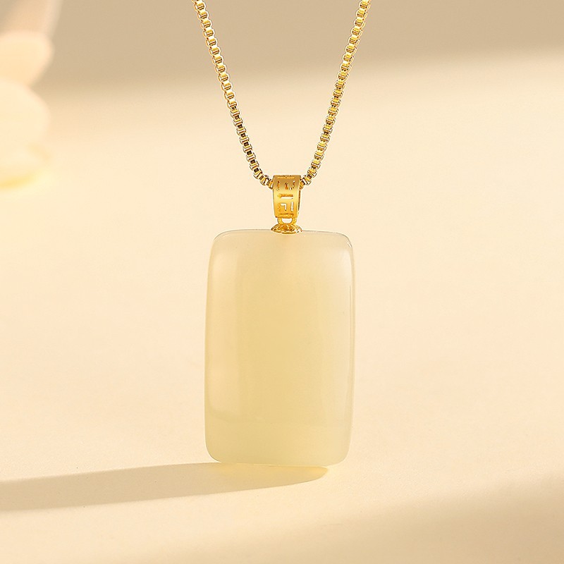 18K Gold Inlaid Natural Hetian White Jade Qingping Peace Pendant Wholesale Necklace Gift First Choice