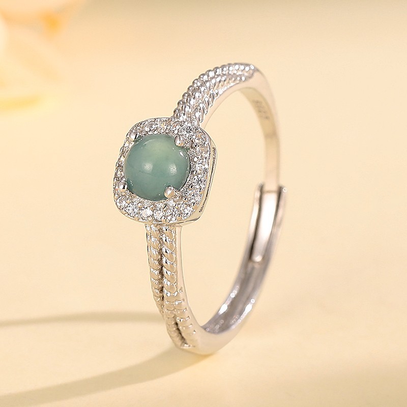 Manufacturer Wholesale Live Supply Natural Dangerous Material Blue Water Jade Ring S925 Silver Inlaid Small Fresh Sugar Cube Women's Ring