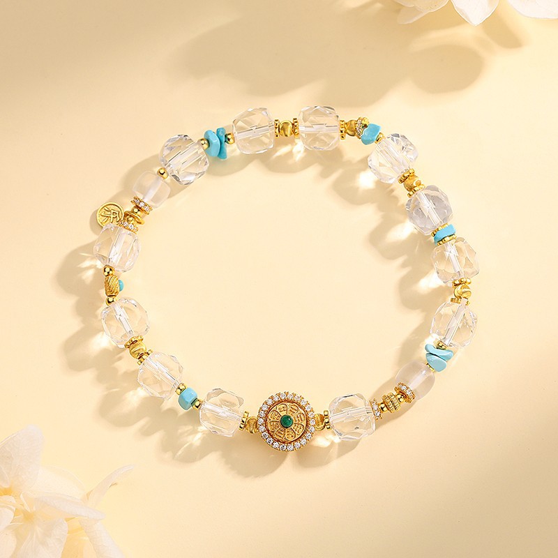 White Crystal Square Turquoise Figure-Eight Twist Wire Bracelet DIY Fashion New Chinese Style Personality Versatile Bracelet