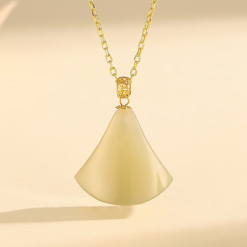 S925 Silver Hetian Jade Peace and Prosperity Necklace Clavicle Chain Jade Pendant Ginkgo Chinese Style Necklace