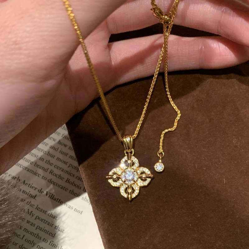 Tiktok 2025 Trending Ancient Hollow Cross Vajra Necklace Heavy Craftsmanship Diamond-Studded Dazzling Exquisite Versatile Necklace