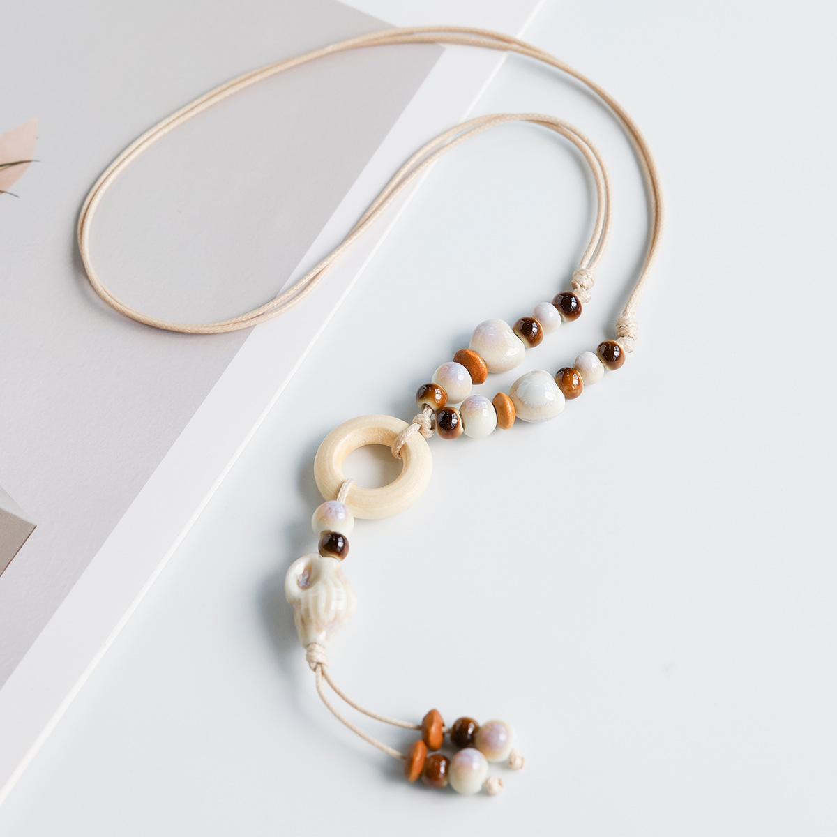 New Chinese Ethnic Style Ceramic Necklace Wholesale Jingdezhen Porcelain Bead Woven Sweater Chain Antique Pendant Manufacturer Supply