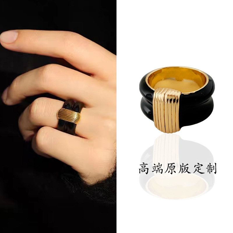 Copper-Plated 18K Gold Vertical Pattern Handmade Enamel Glaze Ring Dopamine Colorful Ring