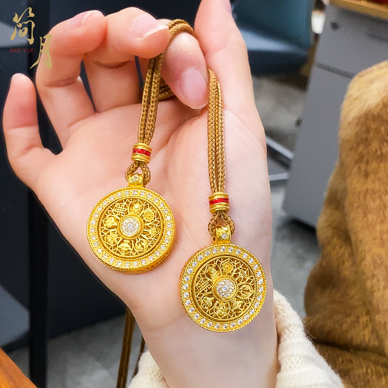 Ancient French sand golden Buddha palm pendant bergamot transfer lucky necklace adjustable sweater chain fashion Joker wholesale
