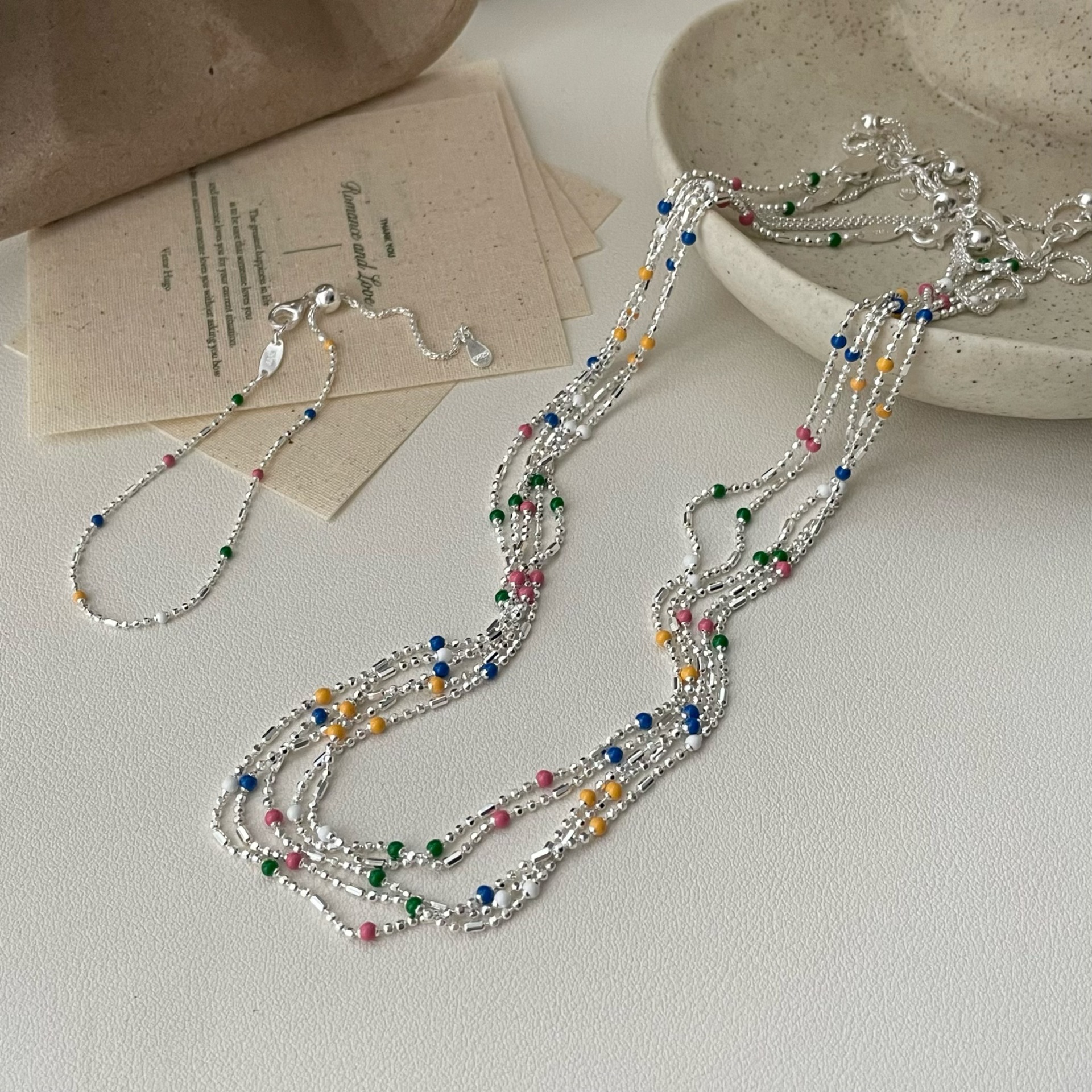 Vintage French-Style Necklace with Diamonds, Enamel Flowers, and Pearls, Retro Temperament Set, Wholesale from Manufacturer
