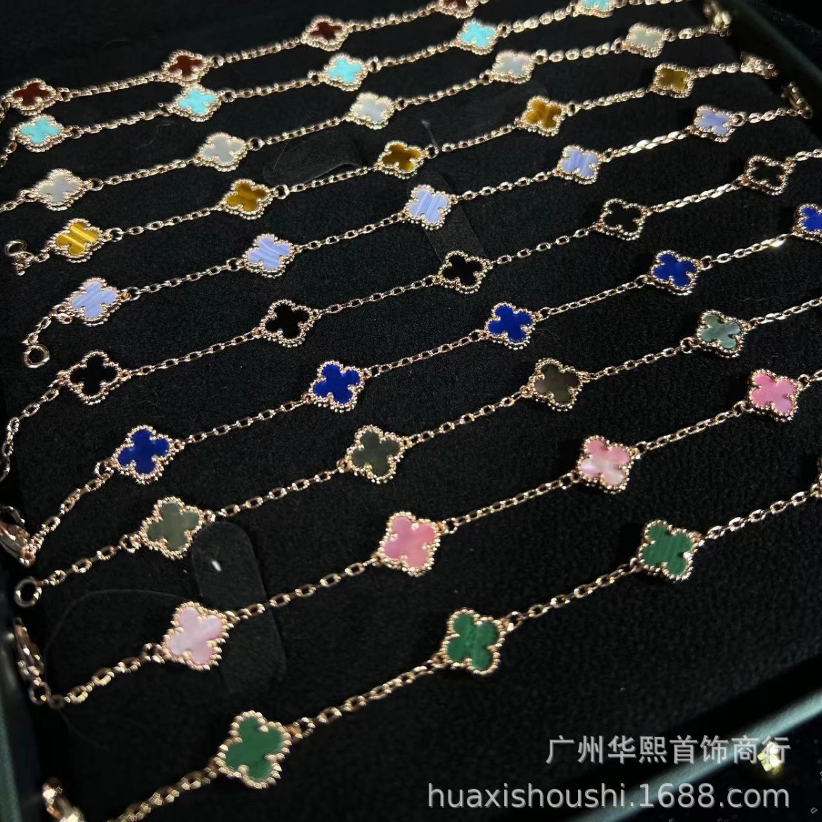 High version tremolo malachite mini mini chalcedony small size powder white gray fritillary four-leaf clover black red agate bracelet