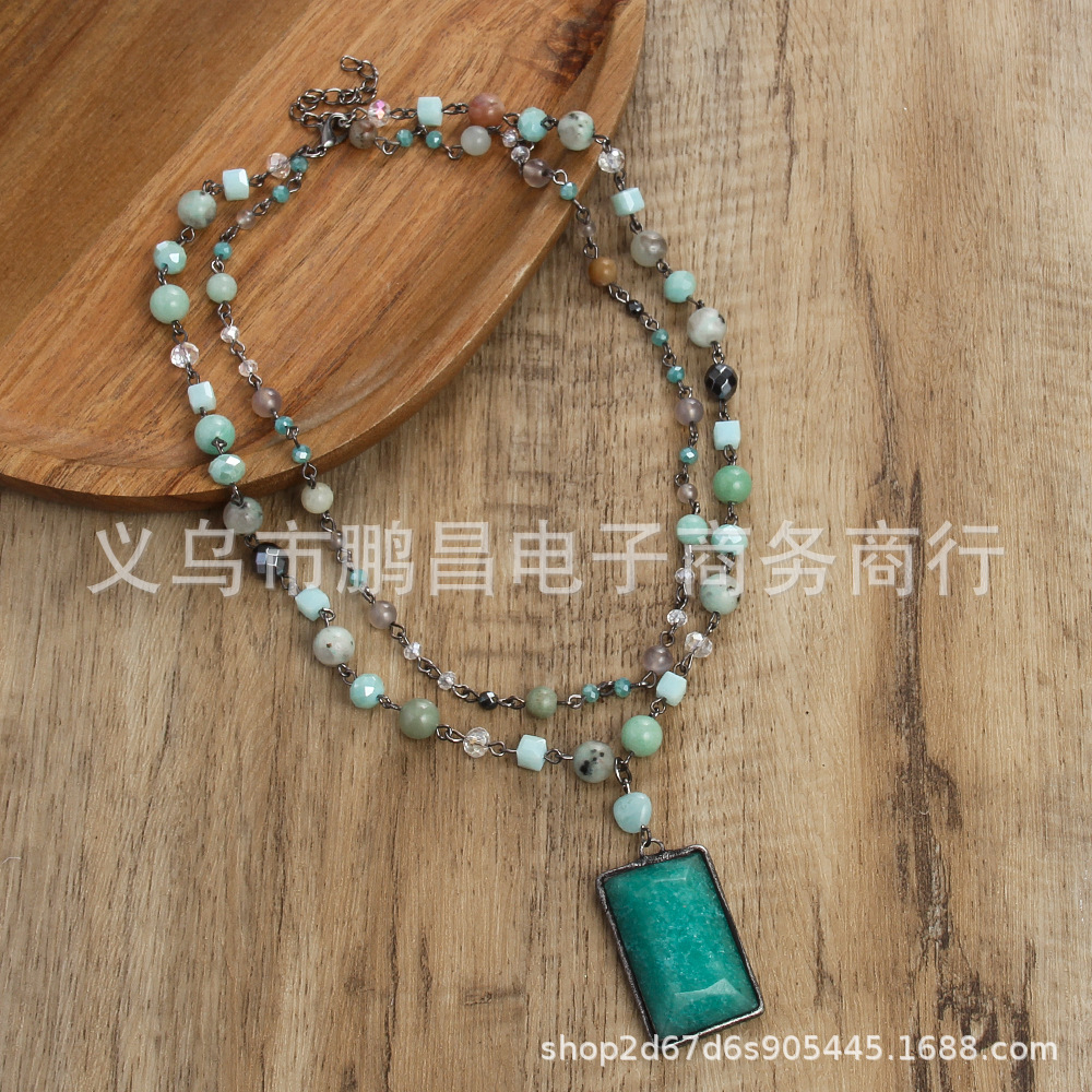 New vintage jewelry 4/6/8mm natural stone glass curved needle gun black chain 2-layer necklace square cut stone