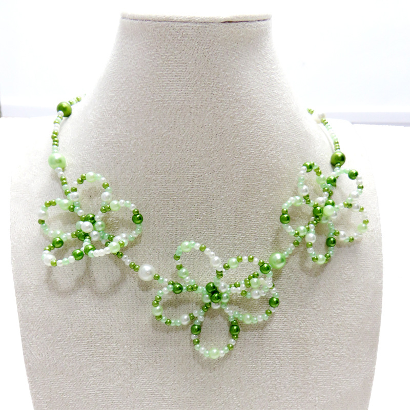 European and American Retro Rhinestone Pearl Necklace White Pearl Five-leaf Clover Necklace Earrings Bracelet Three-piece Bridal Jewelry