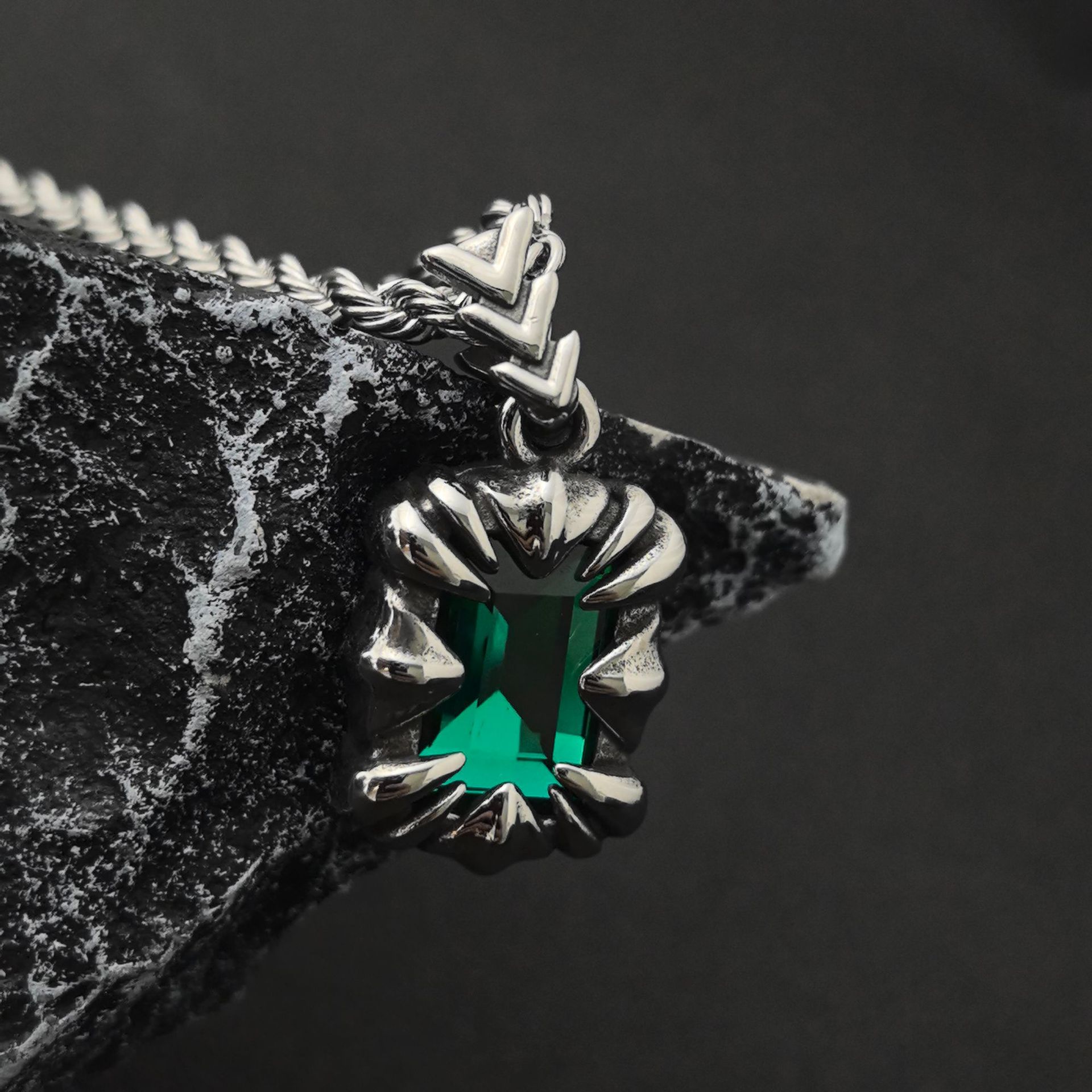 Titanium steel jewelry factory direct retro sunflower sapphire necklace men and women personality stainless steel gem pendant cool