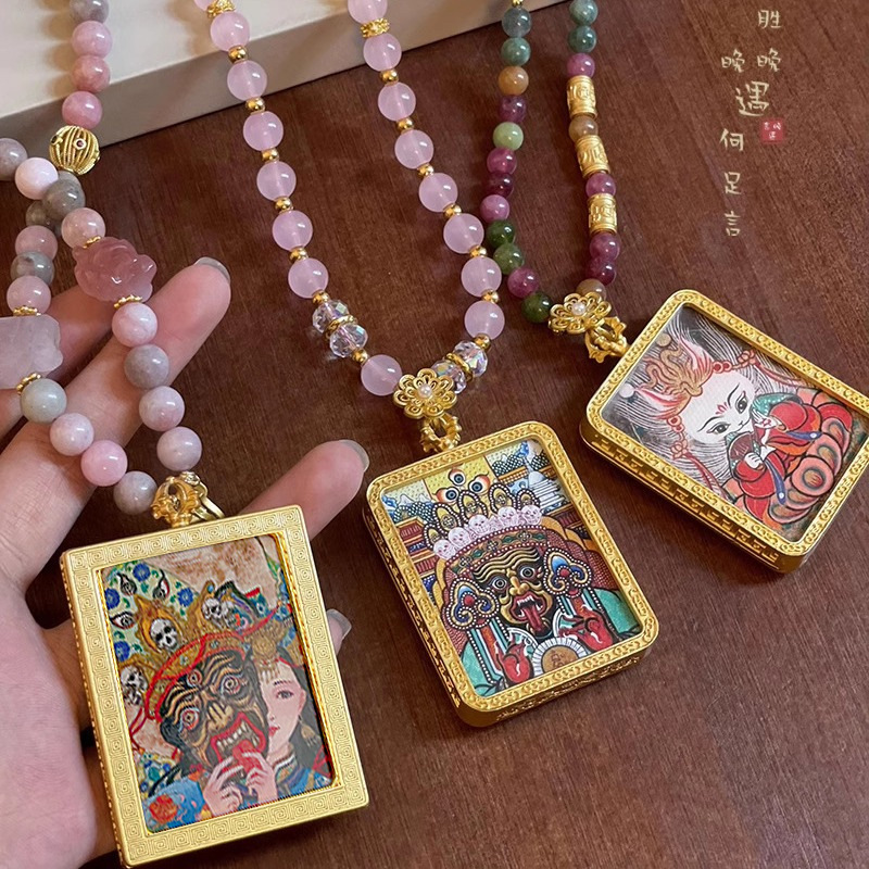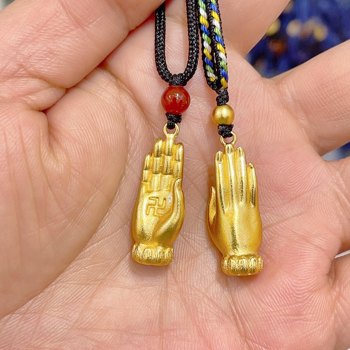 Ancient French sand golden Buddha palm pendant bergamot transfer lucky necklace adjustable sweater chain fashion Joker wholesale