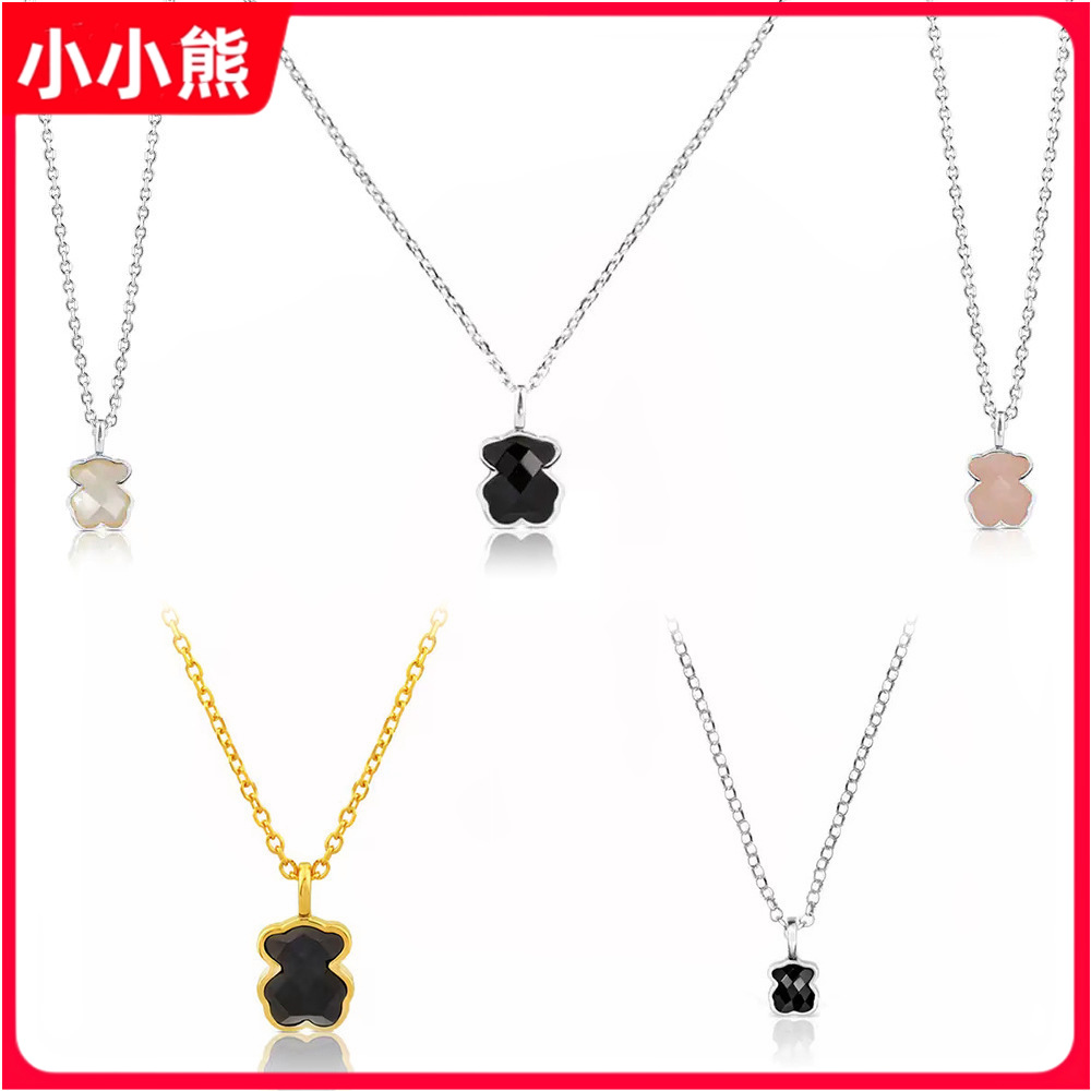 Peach Bear 925 Sterling Silver Natural Stone Bear Necklace Mother-Of-Pearl Agate High-End Versatile Cross-Border European and American 2024