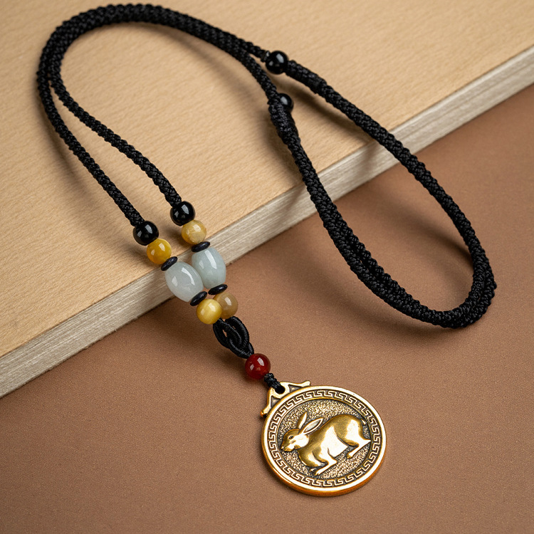 Brass Zodiac Retro Necklace Long Pendant Ethnic Style Original Year Sweater Big Day Tathagata Rabbit Dragon