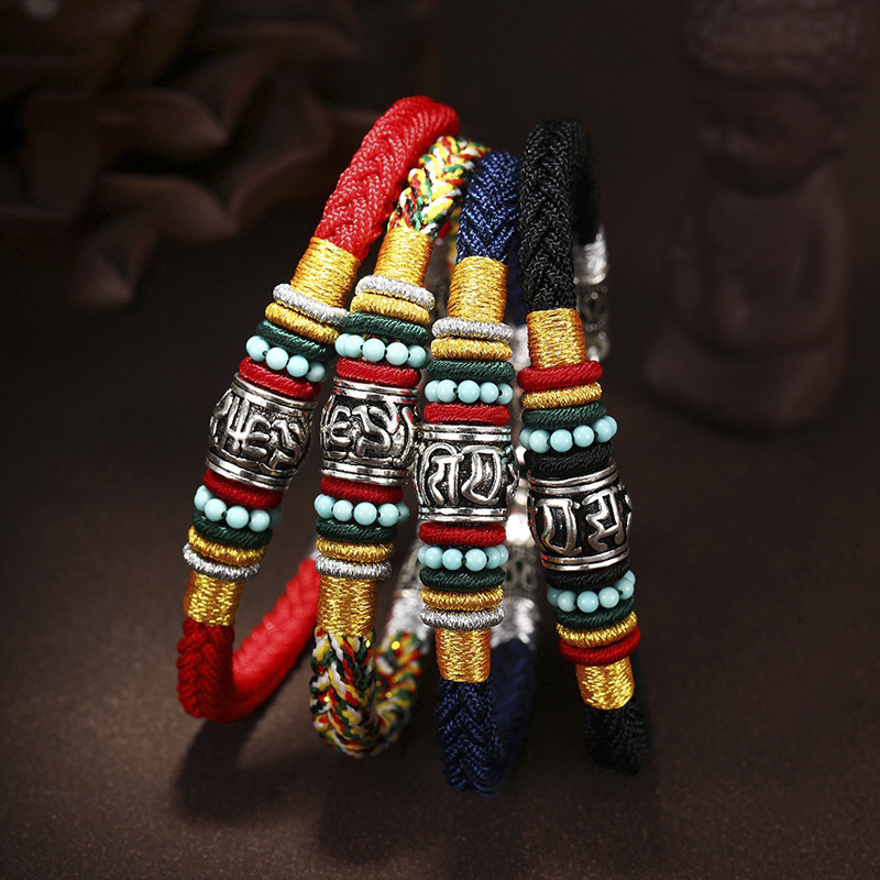 Benmingnian Bracelet Men's Hand-woven Xizang-style Colorful Rope 925 Silver Six-character True Words Ethnic Style Couple's Style