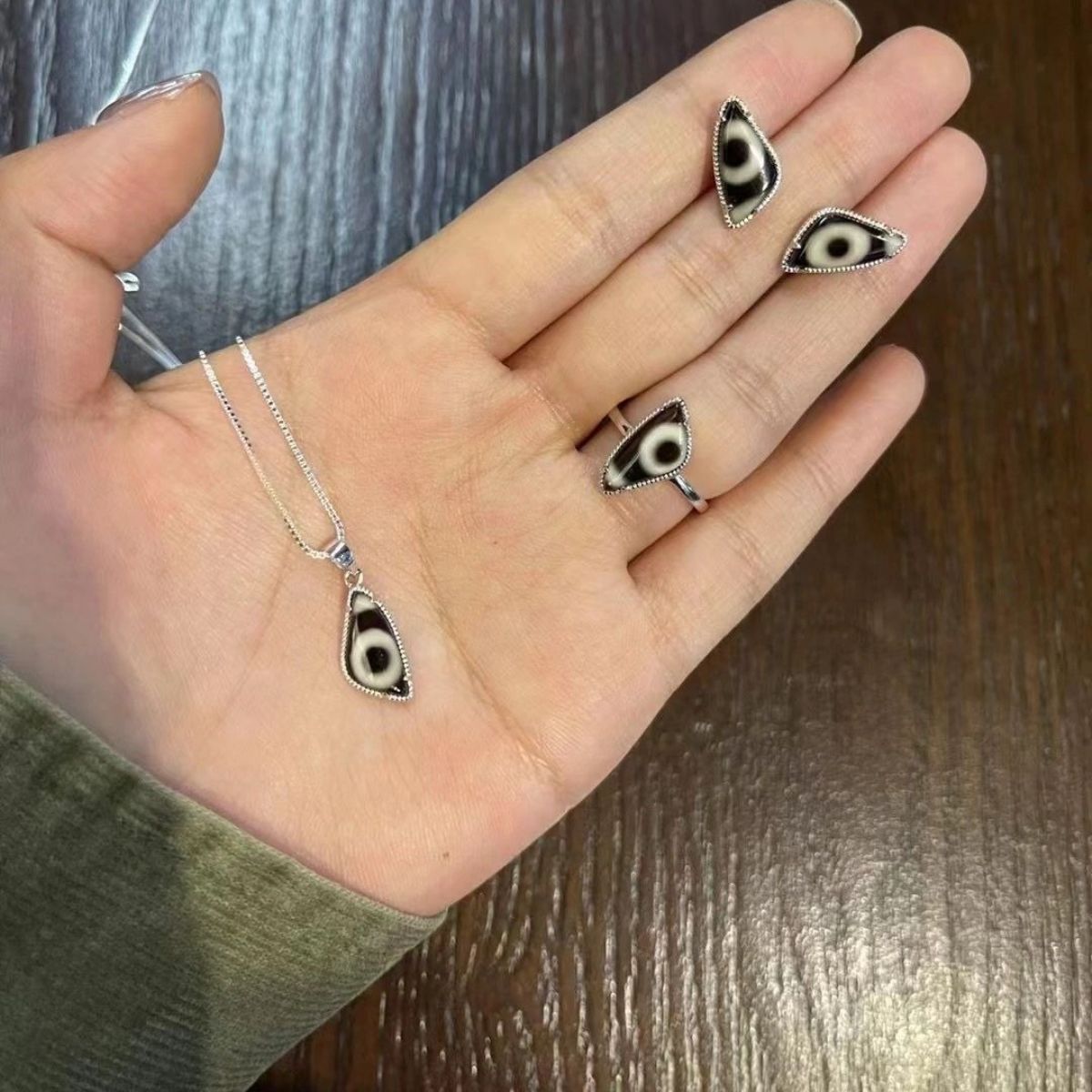 Xizang ethnic style inlaid artificial beads ring necklace earrings suit women's retro ethnic style jewelry all-match