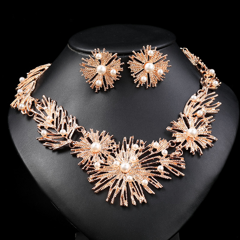 European and American Necklace Set Geometric Retro Exaggerated Alloy Inlaid Imitation Pearl Wedding Accessories Versatile Fashion Factory Direct Sale
