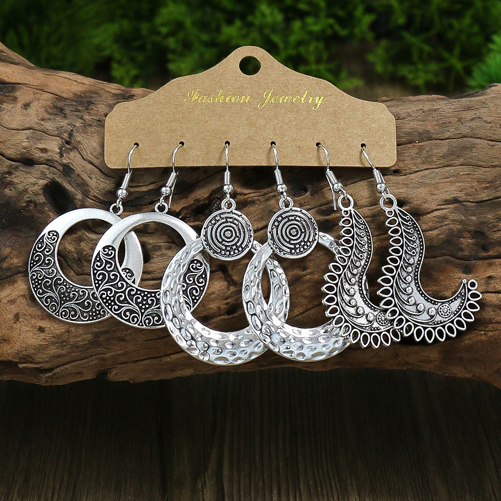 Amazon handmade jewelry retro National style earrings do old geometric alloy set European and American simple earrings wholesale