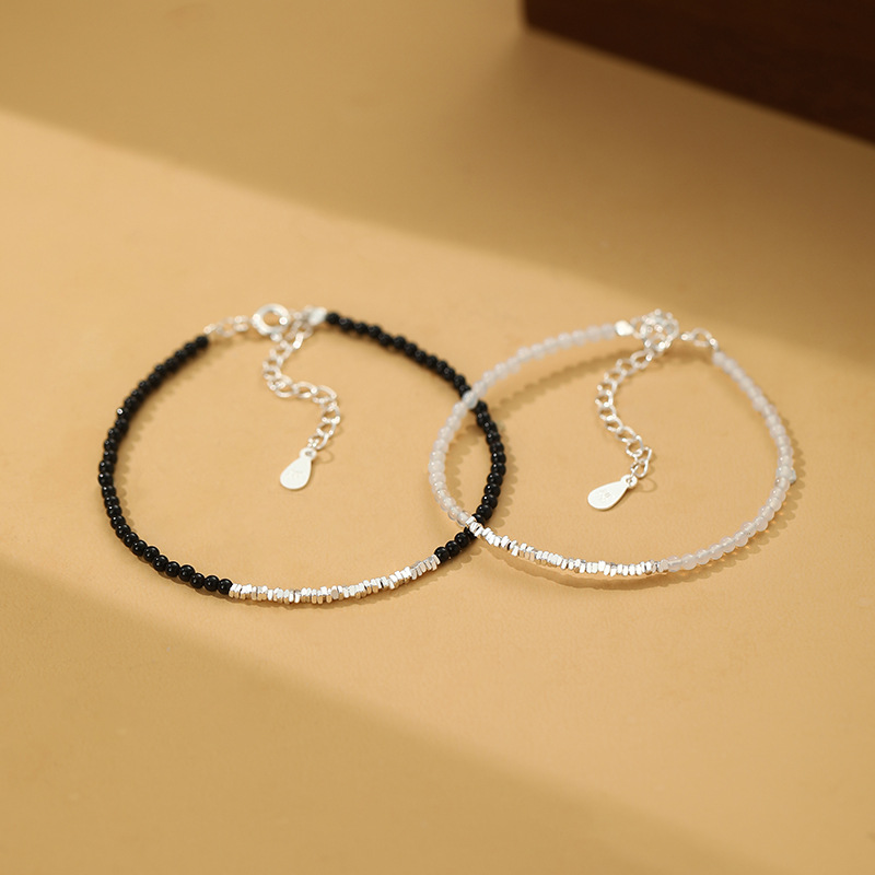 Po S999 Foot Silver Guofeng Agate Couple Bracelet Artistic All-match Chinese Antique Temperament Gentle Gift for Hair