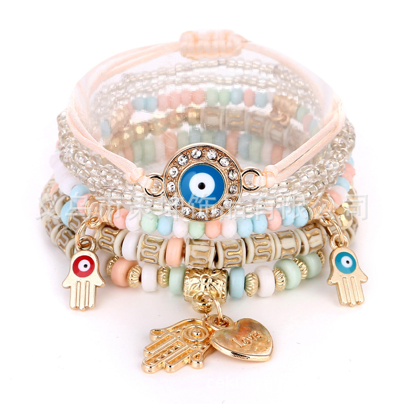 Factory in stock Bohemian Ethnic Style Hot Selling Handmade Beaded Fashion Eyes Rice Beaded Temperament Multi-layer Bracelet