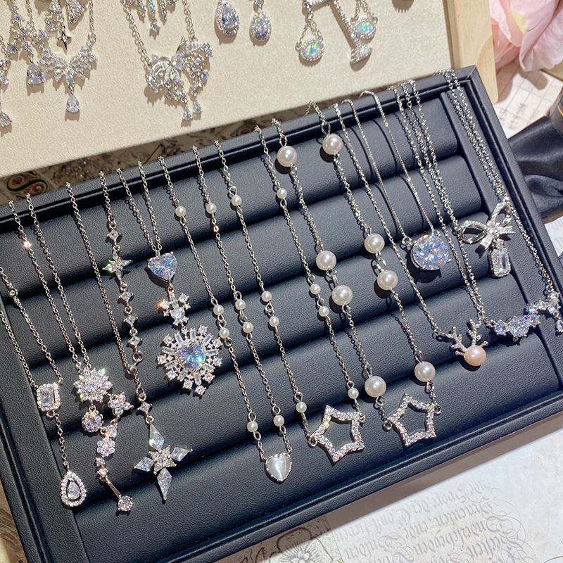 Camellia new jewelry bright exquisite white diamond necklace women's 18K gold plated simple sweet girl Super fairy clavicle chain