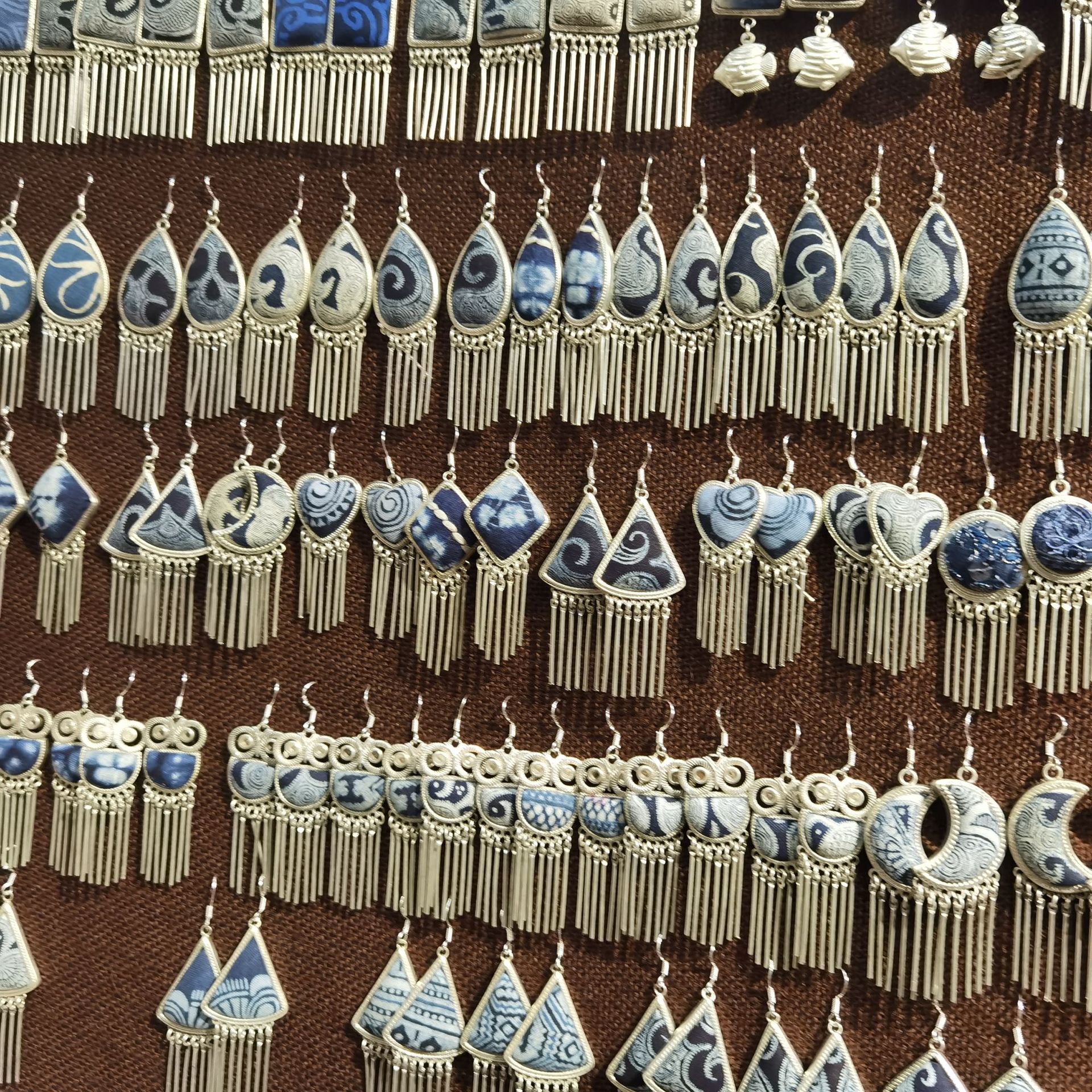 Yunnan old Miao silver wax-dyed handmade vintage ethnic style earrings tie-dyed earrings tie-dyed jewelry