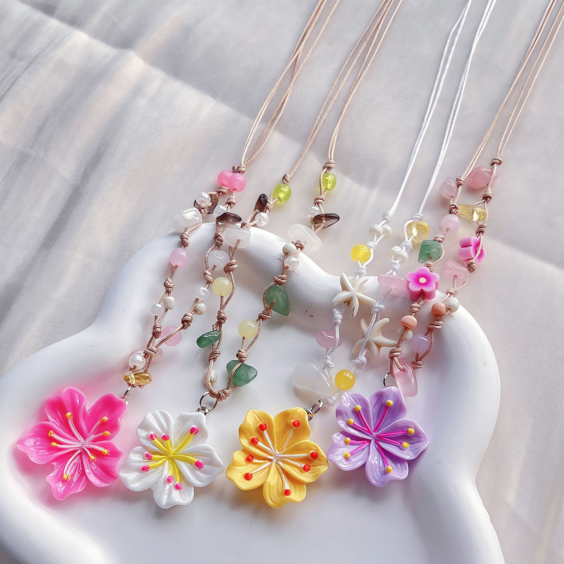 New Four Color Flower Necklace Natural Stone Colored Beads Handmade Rope Fashion All-match Necklace Chain Clavicle Chain Women's Jewelry