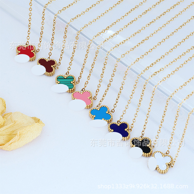 E-Commerce Popular Titanium Steel Lucky Four-Leaf Clover Double-Sided Necklace for Women 18K Gold K-Style Classic Versatile Jewelry Clavicle Chain I