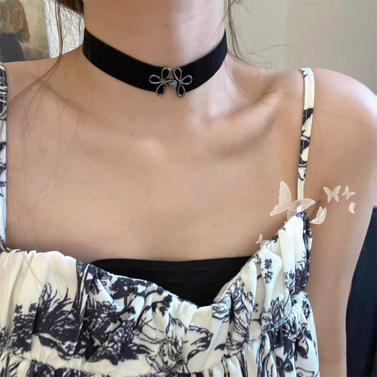 New Chinese style buckle velvet choker autumn and winter short necklace high-grade necklace sweater chain black clavicle chain for women