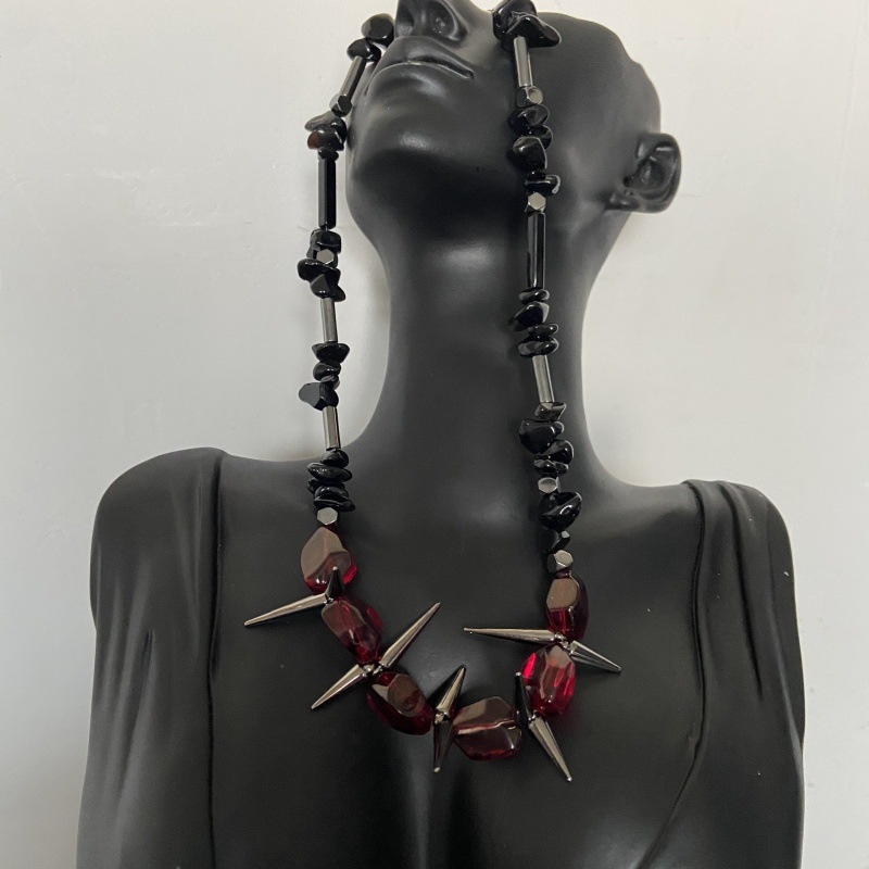 Diablo Gothic Style Heterosexual Irregular Red Gravel Rivet Stitching Necklace Female Niche Vintage Distinctive Clavicle Chain