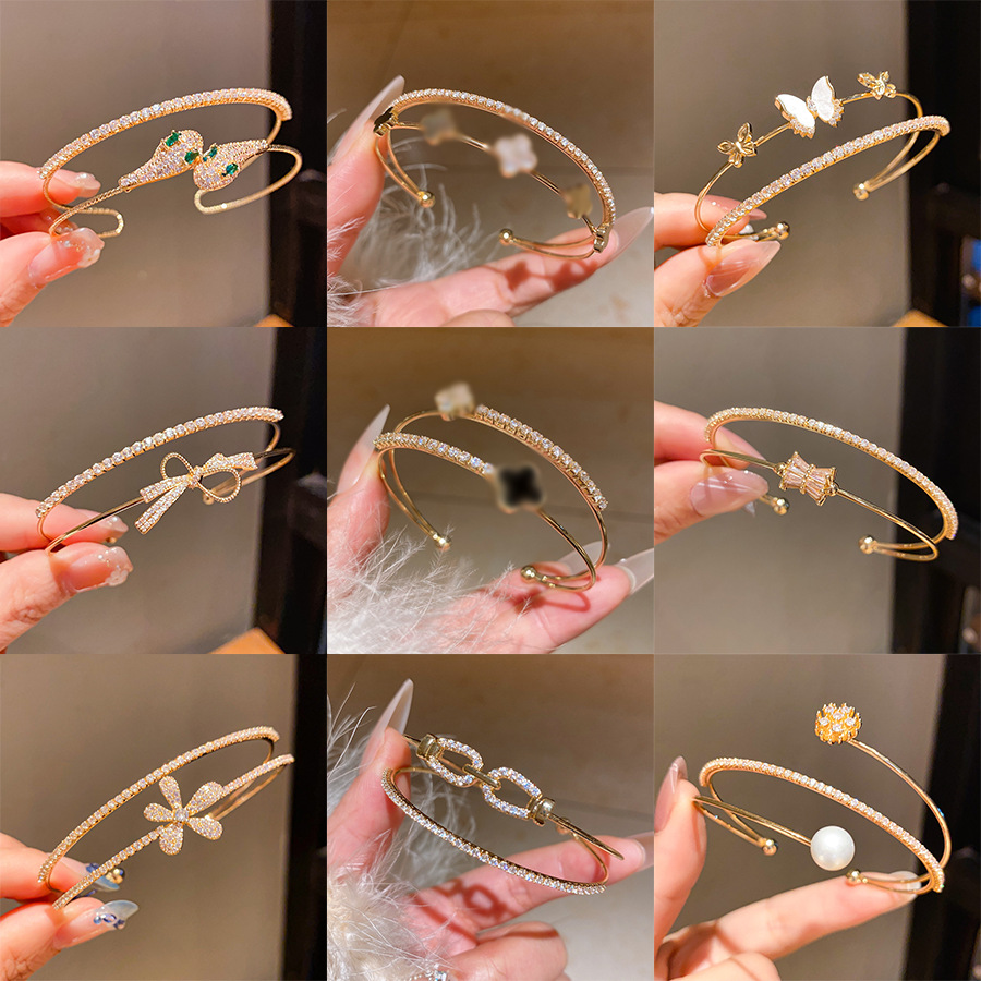 Zircon Bow Open Bracelet Retro Simple Fashion Temperament Versatile Bracelet Light Luxury High-End Jewelry Wholesale