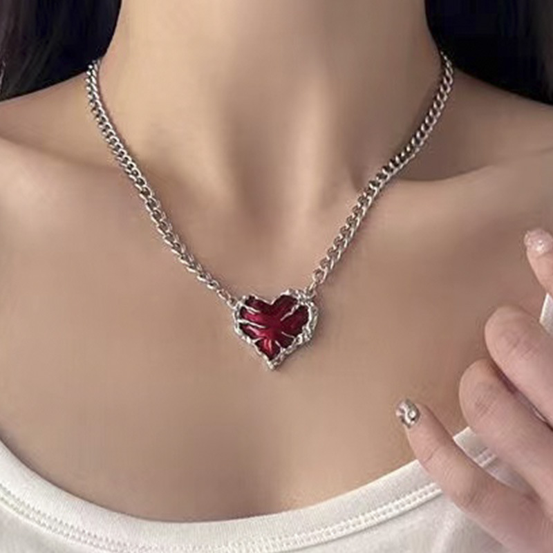 Punk red love pendant exaggerated clavicle chain ins personality dark niche necklace women's new jewelry wholesale