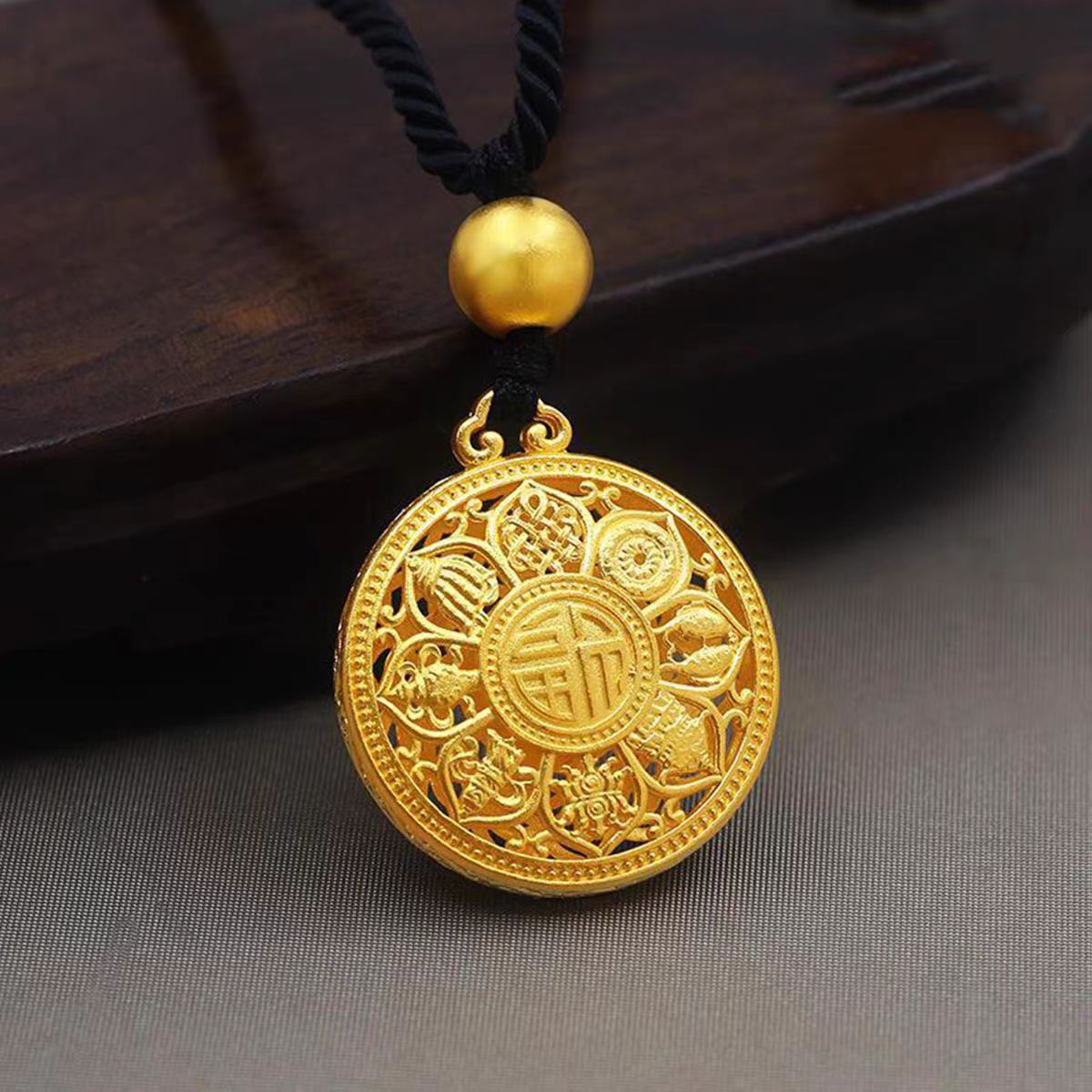 Premium Eight Treasures Compass Hollow Fortune Pendant Couple's 520 Valentine's Day Gift Gold-Plated Fortune Bead with the Character "Fu"