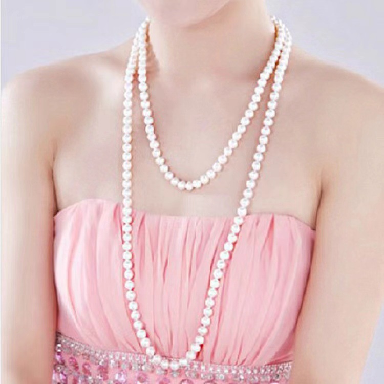 Cross-border European and American fashion 8mm glass imitation pearl knotted sweater chain multi-layer cheongsam accessories 1 meter 5 long necklace