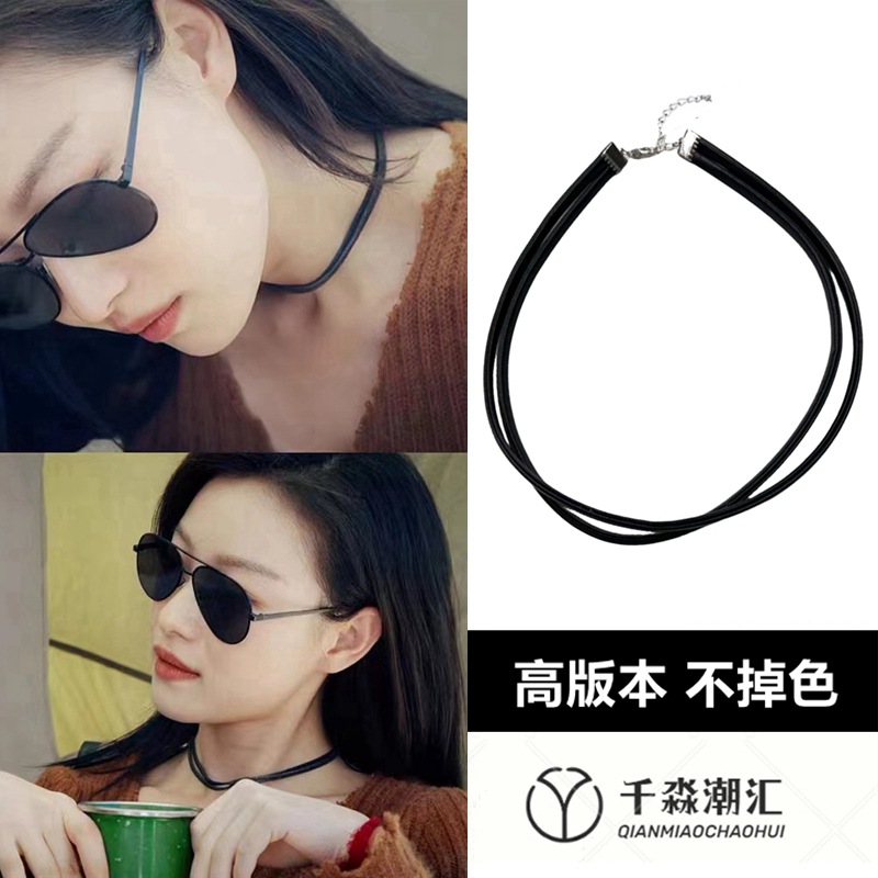 Long-lasting color protection West-out Jade Gate Ye Liuxi same style high-grade black leather rope necklace collar choker necklace fashion