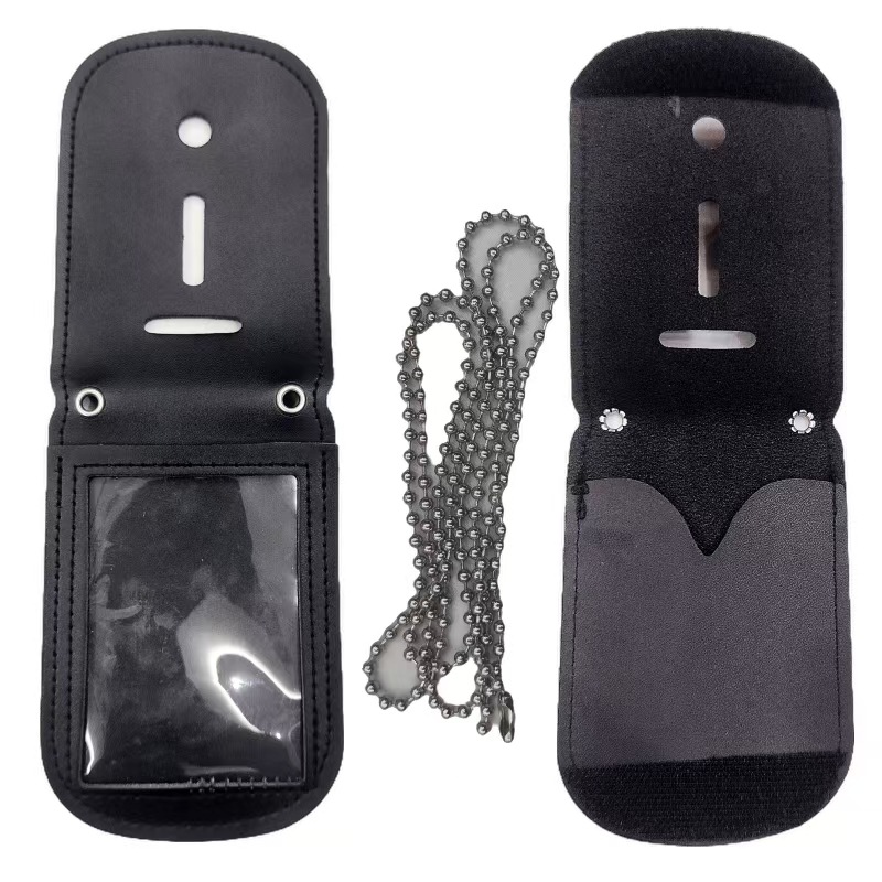 Metal Badge with Black Two-Layer Cowhide Leather Case, Security Guard Necklace, Neck and Waist Hanging Imitation Enamel Metal Badge