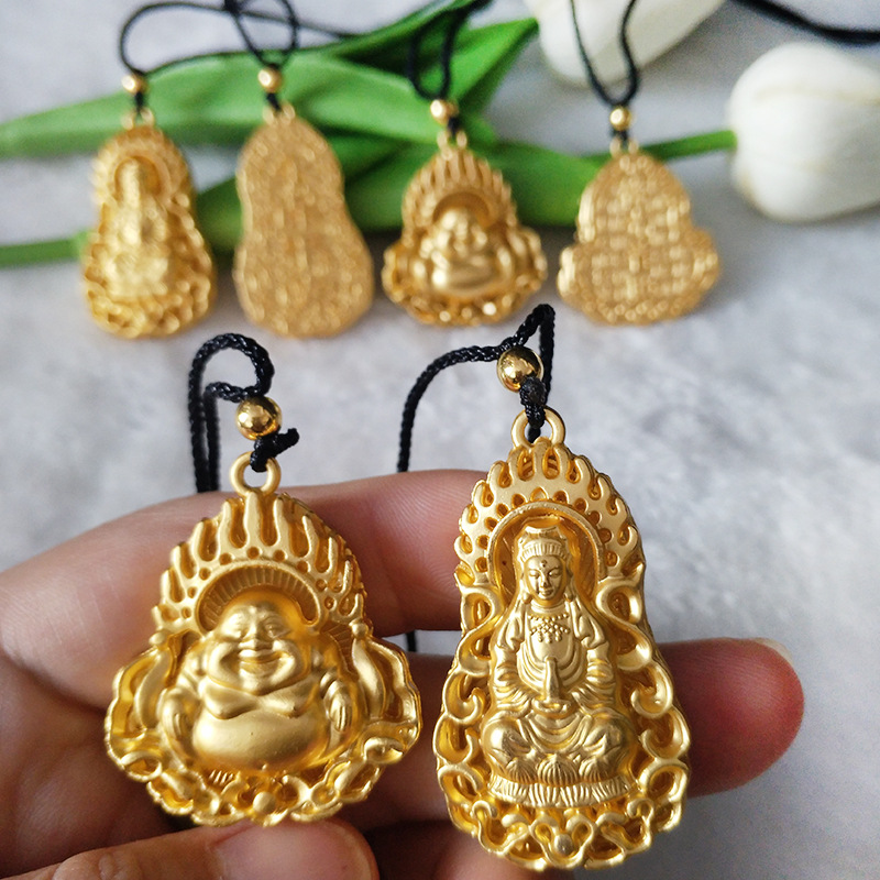 Vietnam Anti-sand Gold Flame Guanyin Buddha Pendant Necklace Maitreya Buddha Gold Plated Woolen Chain First Jewelry Live Gift