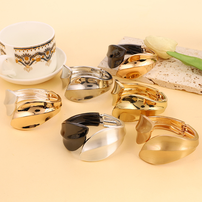 European and American Leaf Asymmetrical Alloy Open Bracelet with Fashionable Design and Elegant Amazon Hot Style Export Hot