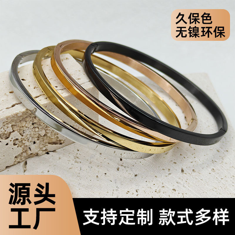 Internet Celebrity Titanium Steel Plain Ring Bracelet Customized Glossy Buckle High-End Non-Fading DIY Stainless Steel Bracelet Embryo