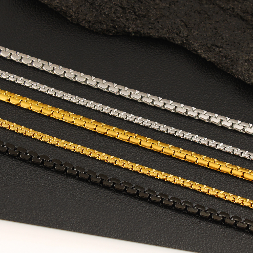 Stainless Steel Flat Square Pearl Necklace 18K Gold Titanium Steel Cuban Chain Personalized Unisex Jewelry Minimalist Style Light Luxury